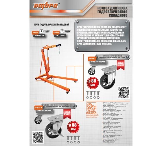 Технические характеристики поворотного колеса для гидравлических складных кранов Ombra 59018