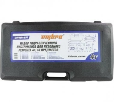 Набор гидравлического инструмента для кузовного ремонта Ombra OHT948N 4 т, 18 предметов 59054 представляет собой компактные и удобные в эксплуатации комплекты, состоящие из гидравлического насоса, цилиндров, удлинителей и фигурных насадок, применяемый для производства работ по ремонту и восстановлению силовых элементов кузовов легковых автомобилей и легких грузовиков, осложненных жестяных работ и работ по обслуживанию металлоконструкций.